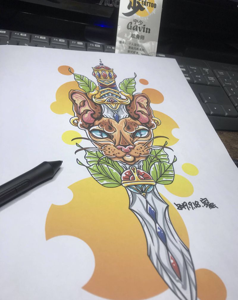 当前位置: 首页 >广东省湛江市纹身店-宁少TATTOO纹身图案>原创+猫