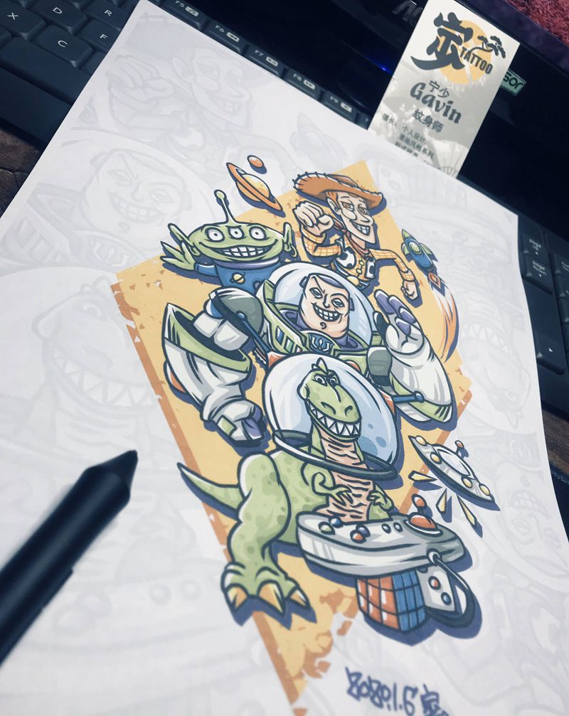 玩具总动员纹身图片_手臂腿部New School卡通玩具纹身图案