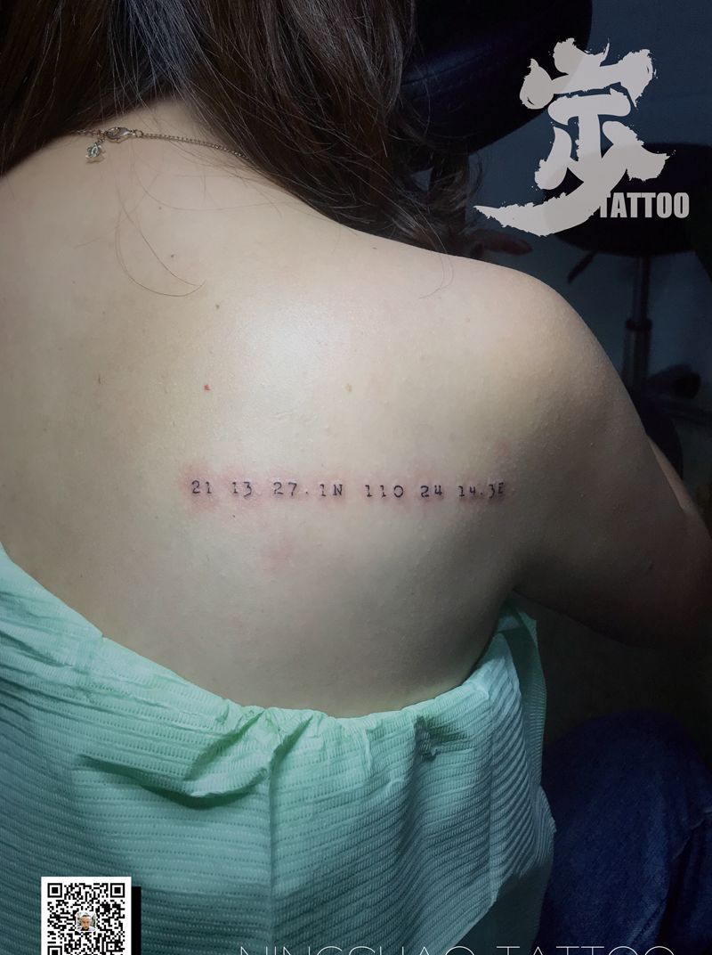 当前位置: 首页 >广东省湛江市纹身店-宁少TATTOO纹身图案>背+经纬度纹身图片_背部几何花体字纹身图案