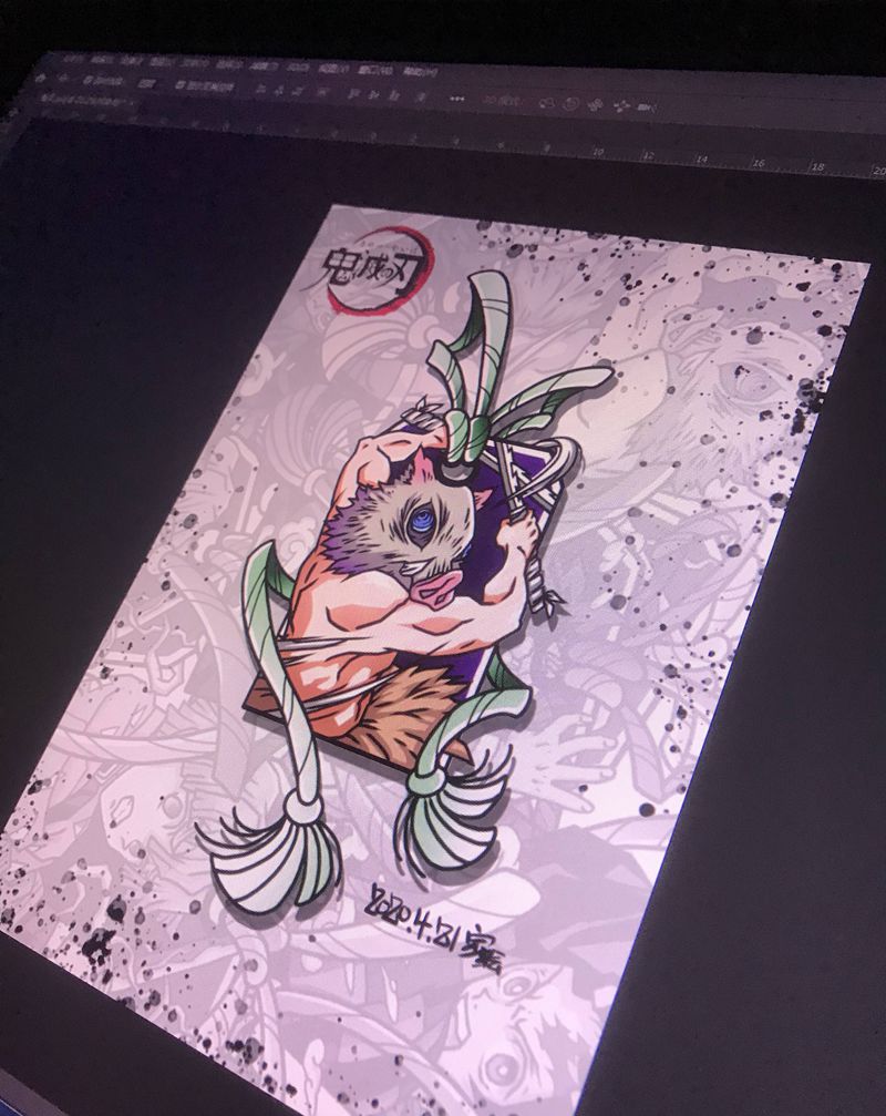 鬼灭+伊之助纹身图片_手臂腿部New School新传统动漫鬼灭纹身图案