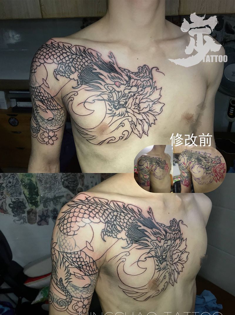 半甲龙+修改(未完成)纹身图片_胸部手臂老传统龙半甲纹身图案