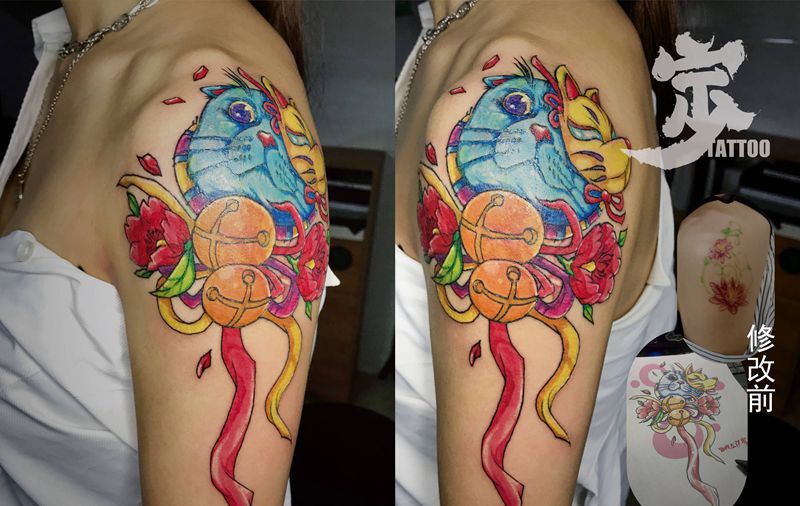 当前位置: 首页 >广东省湛江市纹身店-宁少TATTOO纹身图案>日式猫+覆盖纹身图片_手臂新传统New School纹身图案