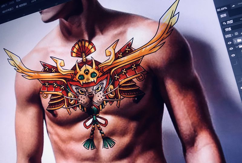 当前位置: 首页 >广东省湛江市纹身店-宁少TATTOO纹身图案>武士猫头花胸纹身图片_胸部背部New School新传统纹身图案