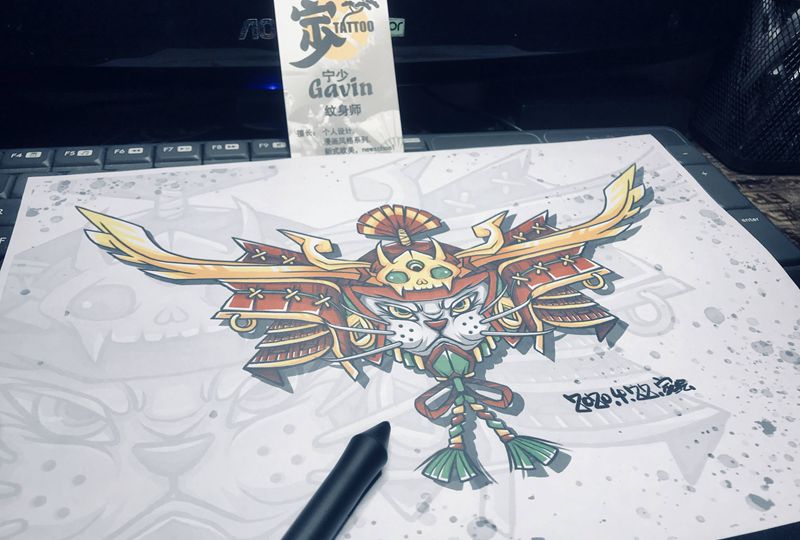 当前位置: 首页 >广东省湛江市纹身店-宁少TATTOO纹身图案>武士猫头花胸纹身图片_胸部背部New School新传统纹身图案