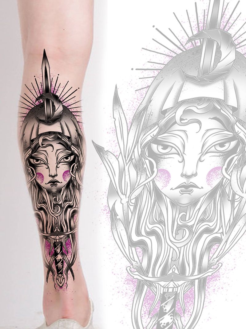 圣女之剑纹身图片_手臂腿部New School纹身图案