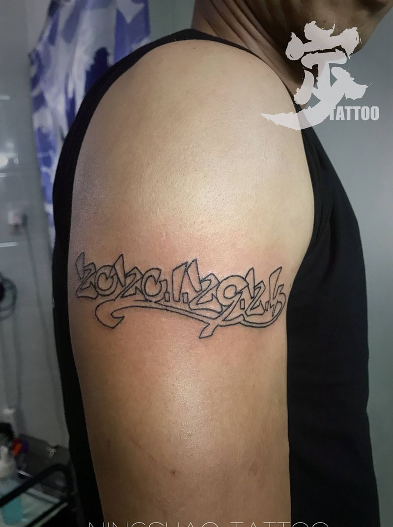 日期202012924纹身图片_手臂图腾花体字纹身图案