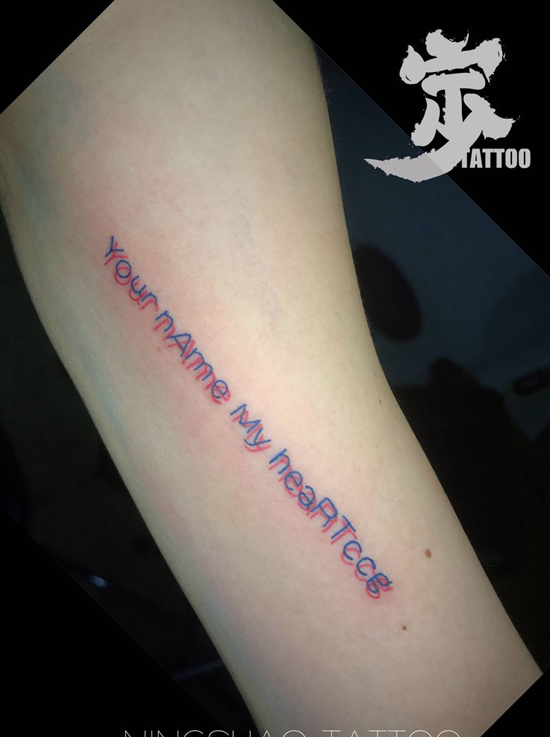 当前位置: 首页 >广东省湛江市纹身店-宁少TATTOO纹身图案>眼花小字儿纹身图片_手臂花体字几何纹身图案