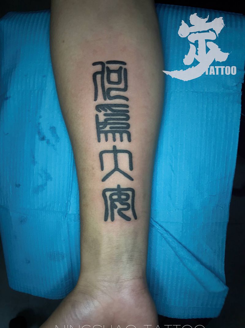 当前位置: 首页 >广东省湛江市纹身店-宁少TATTOO纹身图案>篆书纹身图片_手臂图腾花体字纹身图案