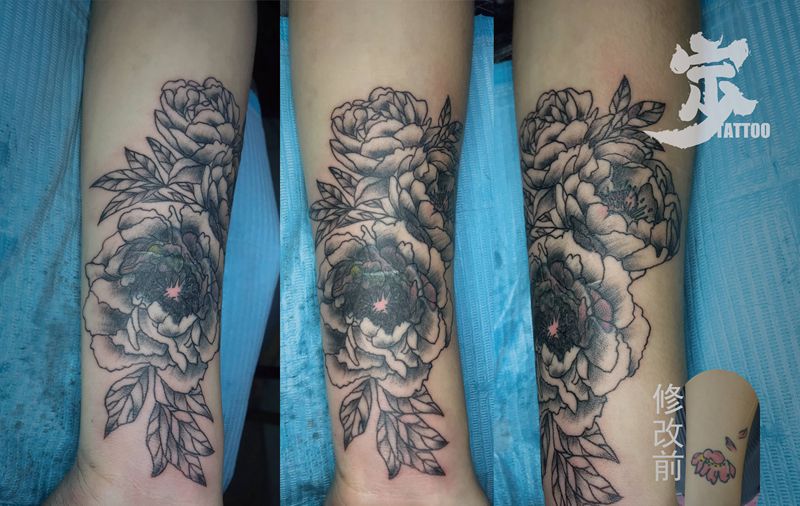 当前位置: 首页 >广东省湛江市纹身店-宁少TATTOO纹身图案>素花+遮盖纹身图片_手臂点刺纹身图案