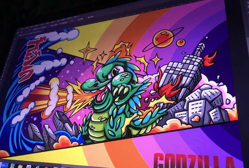 哥斯拉!纹身图片_胸部背部新传统New School哥斯拉纹身图案