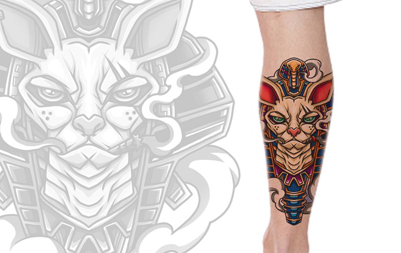 当前位置: 首页 >广东省湛江市纹身店-宁少TATTOO纹身图案>抽雪茄的法老猫老大纹身图片_腿部手臂New School猫纹身图案
