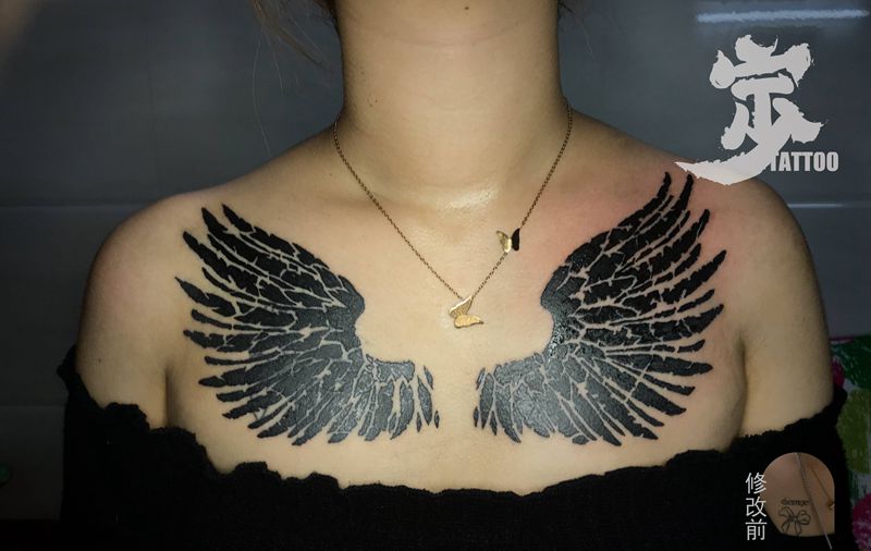 当前位置: 首页 >广东省湛江市纹身店-宁少TATTOO纹身图案>翅膀+遮盖纹身图片_胸部图腾水墨纹身图案