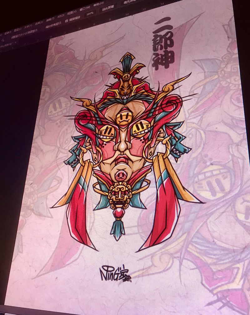 当前位置: 首页 >广东省湛江市纹身店-宁少TATTOO纹身图案>二郎真菌纹身图片_手臂腿部New School纹身图案