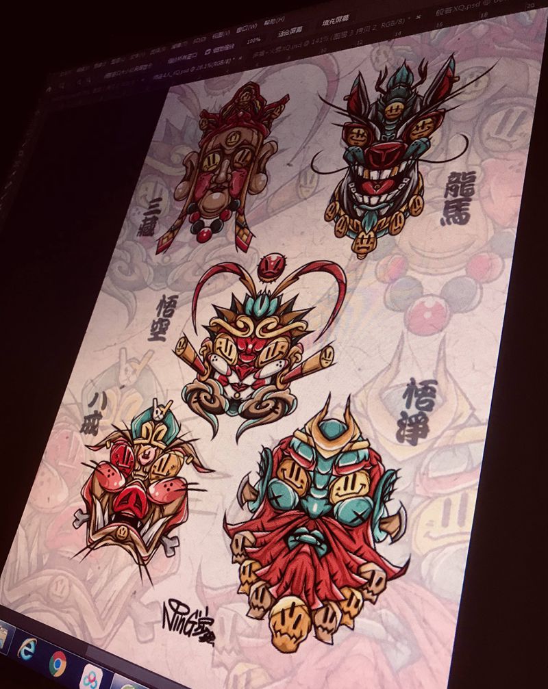西游5师徒纹身图片_手臂腿部New School纹身图案