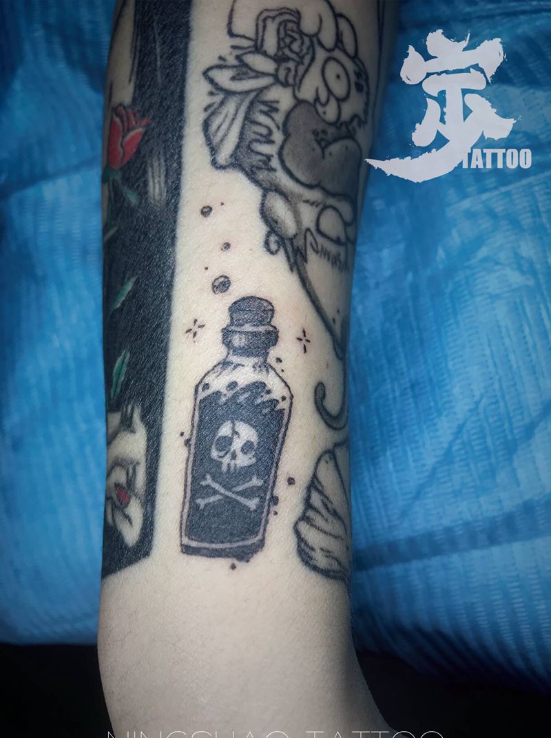 当前位置: 首页 >广东省湛江市纹身店-宁少TATTOO纹身图案>毒药☠️纹身图片_手臂New School点刺纹身图案