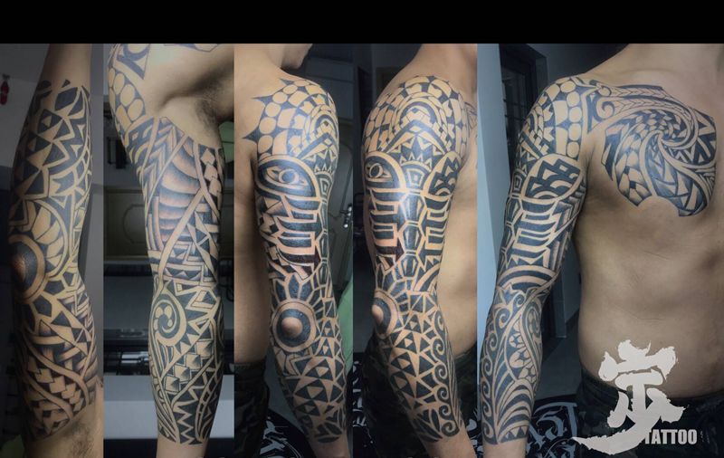 当前位置: 首页 >广东省湛江市纹身店-宁少TATTOO纹身图案>图腾大花臂纹身图片_手臂图腾纹身图案
