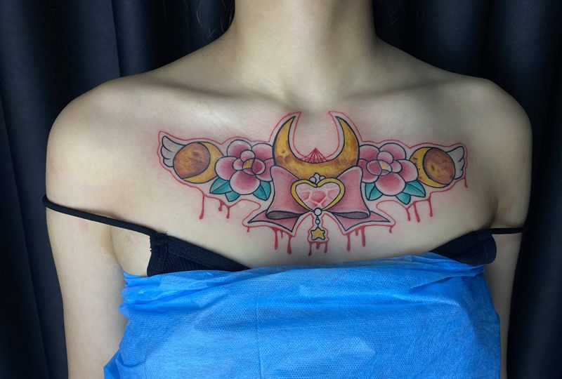 当前位置: 首页 >广东省江门市纹身店-侯刺青纹身工作室纹身图案>花胸纹身图片_胸部New School新传统纹身图案