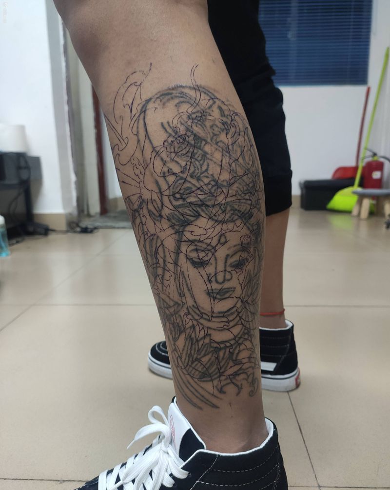 当前位置: 首页 >广东省江门市纹身店-侯刺青纹身工作室纹身图案>暴力遮盖未完成纹身图片_腿部新传统纹身图案