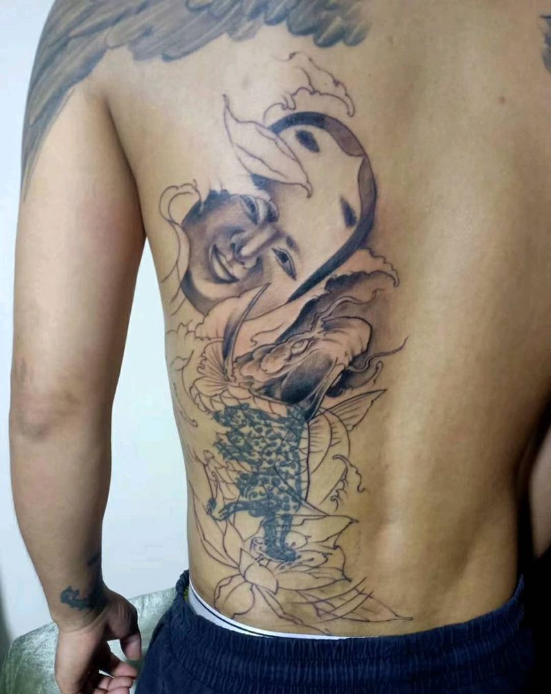 当前位置: 首页 >广东省江门市纹身店-侯刺青纹身工作室纹身图案>遮盖作品,未完成纹身图片_背部新传统纹身图案