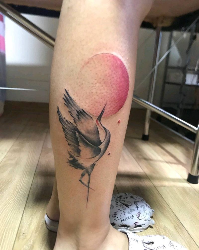 鹤~女纹身图片_腿部水彩纹身图案