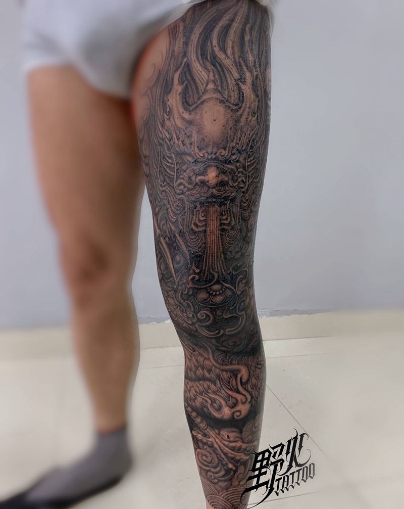 当前位置: 首页 >广东省湛江市纹身店-野火刺青纹身图案>石雕盘龙纹身图片_腿部石雕龙花腿纹身图案