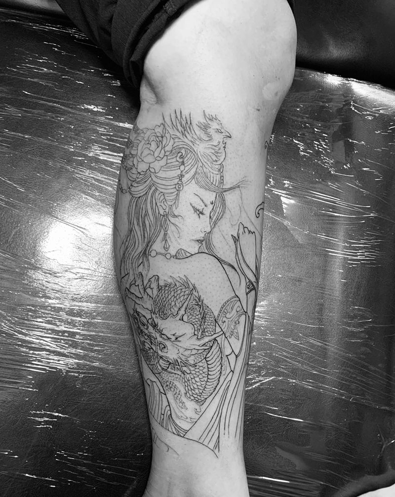 当前位置: 首页 >广东省湛江市纹身店-野火刺青纹身图案>艺妓 新传统纹身图片_腿部新传统艺妓纹身图案