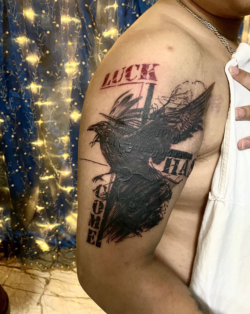 当前位置: 首页 >广东省江门市纹身店-匠奉刺青纹身图案>遮盖案例纹身图片_手臂水墨纹身图案