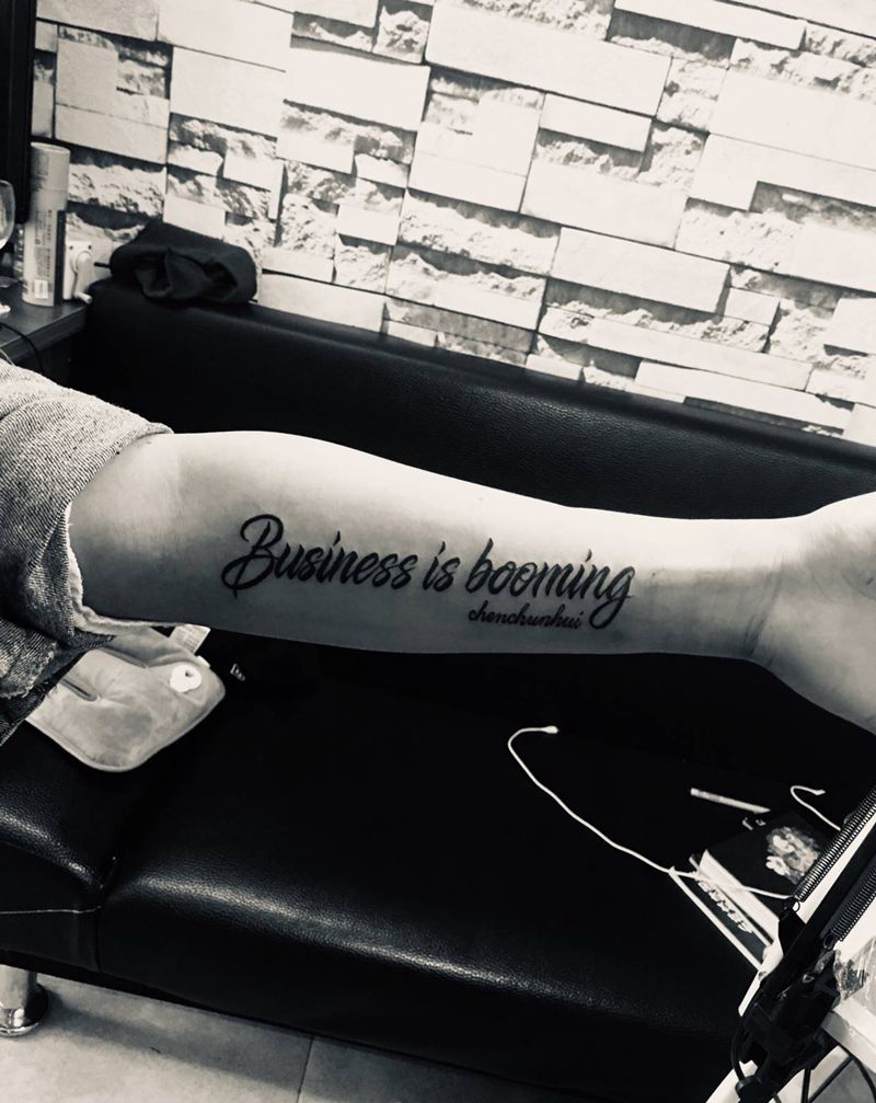 当前位置: 首页 >广东省湛江市纹身店-野火刺青纹身图案>生意兴隆英文纹身图片_手臂花体字纹身图案