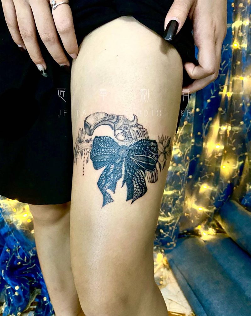遮盖案例纹身图片_腿部欧美写实纹身图案