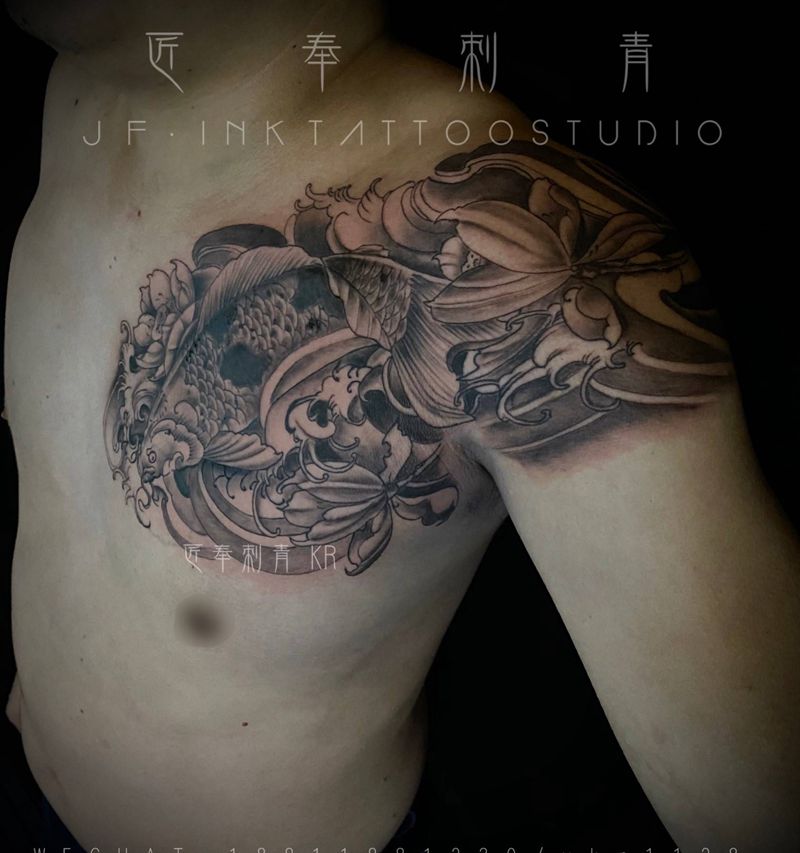 一组15张莲花纹身手