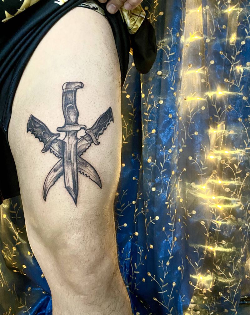 • T网红王老大花腿龙纹身图片_腿部新传统纹身图案