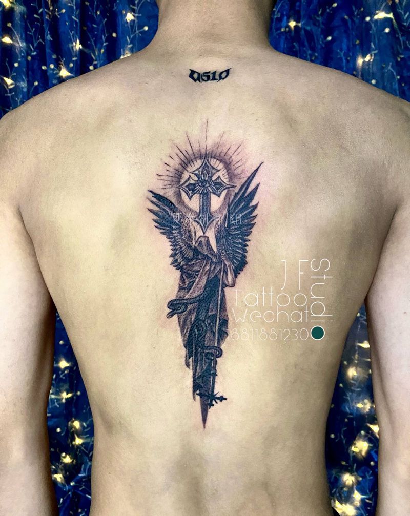 • 纹身吧推荐的披肩图腾半胛纹身图案作品展示