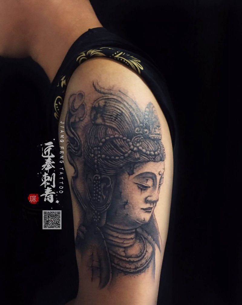 大势至菩萨纹身图片_手臂欧美写实纹身图案