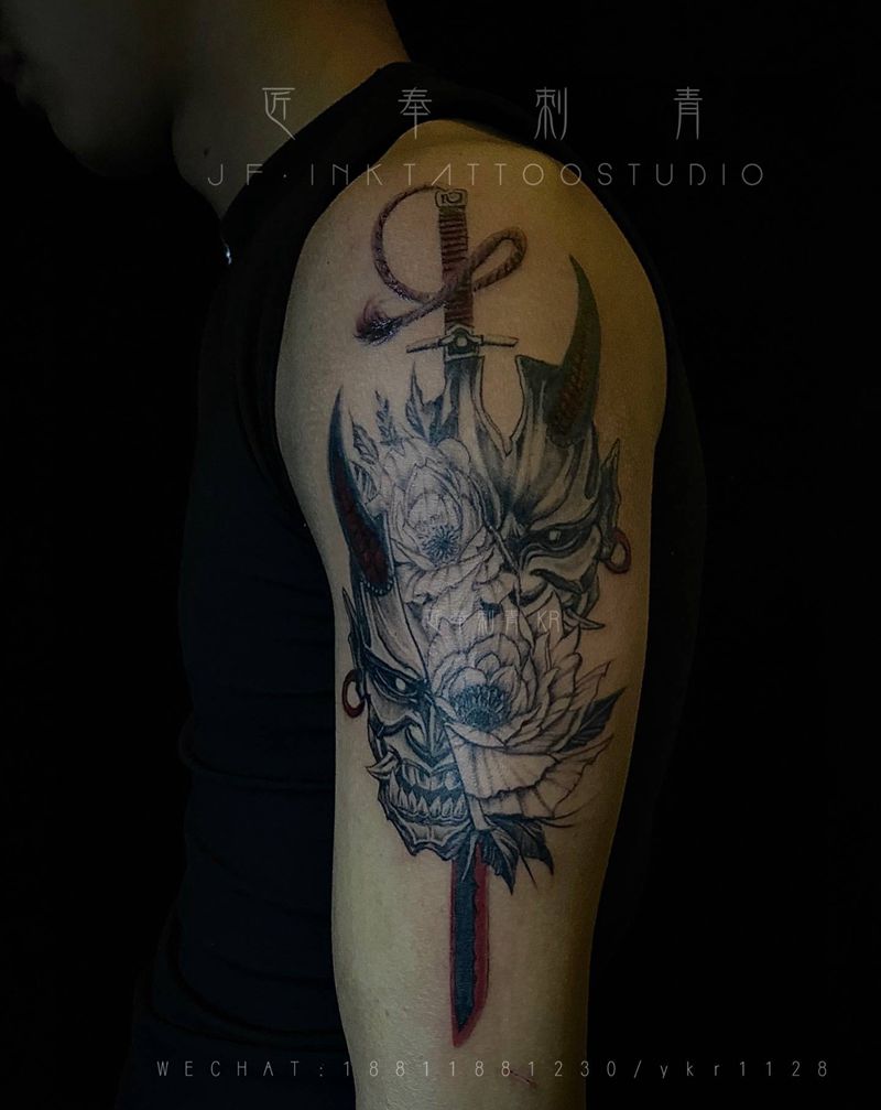 当前位置: 首页 >广东省江门市纹身店-匠奉刺青纹身图案>般若纹身图片_手臂新传统纹身图案