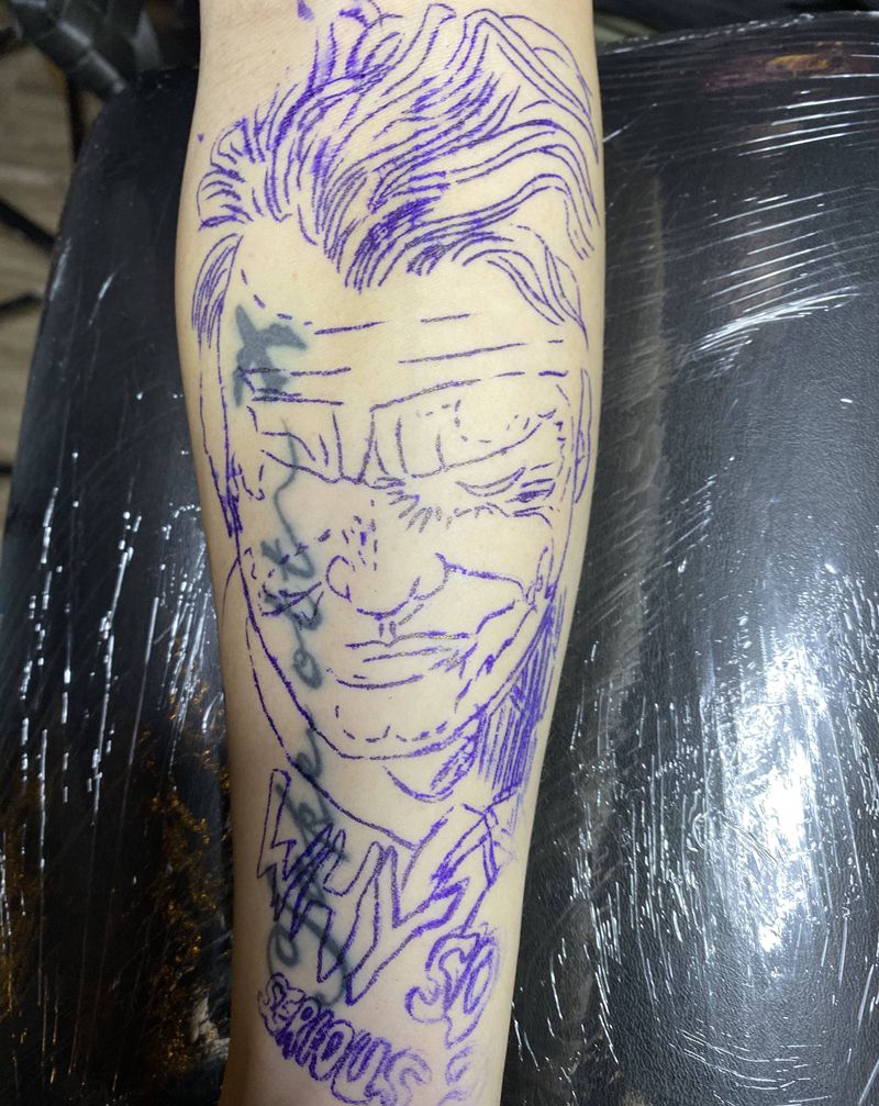 当前位置: 首页 >广东省江门市纹身店-匠奉刺青纹身图案>小丑遮盖纹身图片_手臂欧美写实纹身图案