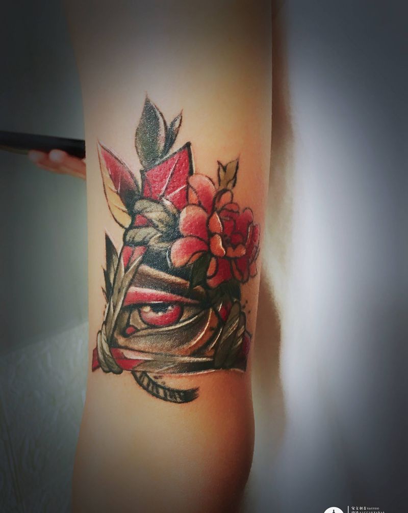 • 手背潮流时尚的玫瑰花眼睛纹身图案