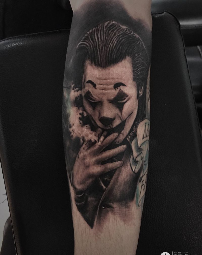 • T包小腿吹火男+阿多福纹身图片_腿部老传统新传统吹火男阿