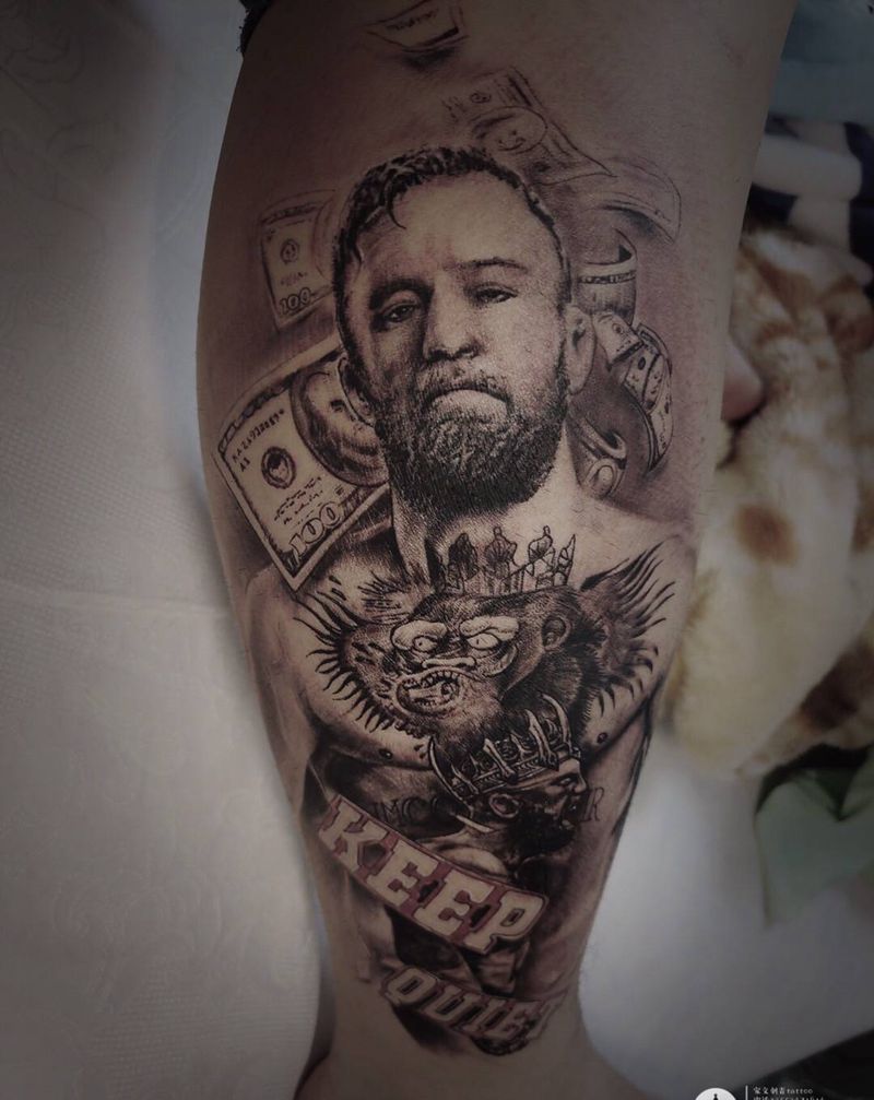 • T包小腿吹火男+阿多福纹身图片_腿部老传统新传统吹火男阿