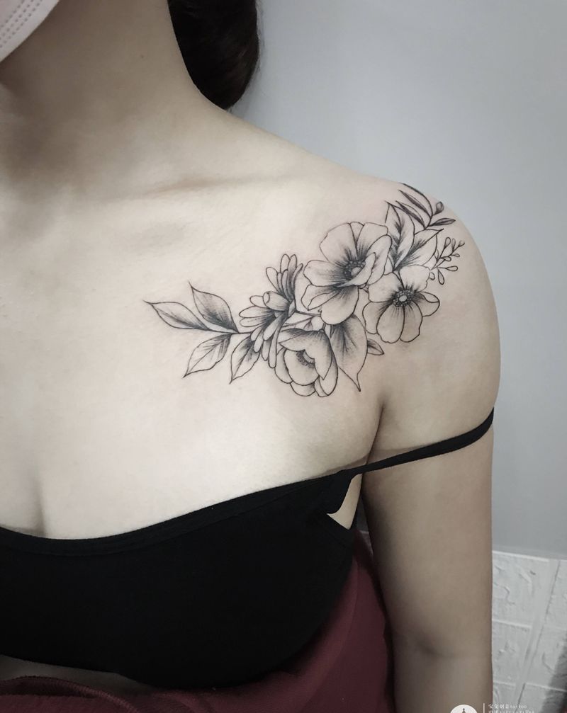 • 女性大花胸纹身_43张霸气漂亮的女性大花胸纹身图案作品