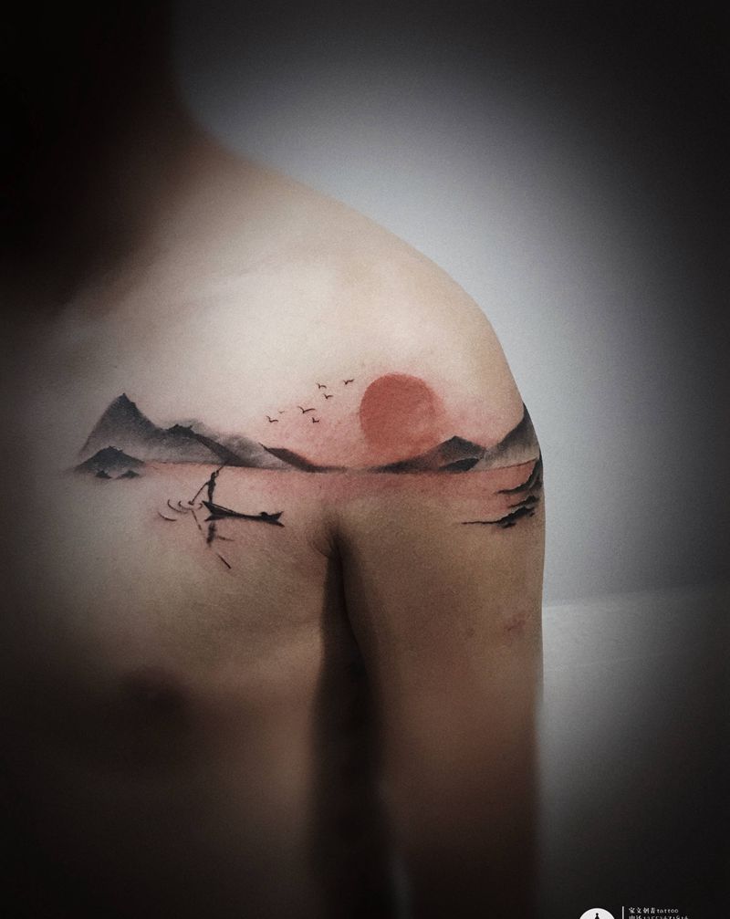 • 纹身吧推荐的披肩图腾半胛纹身图案作品展示