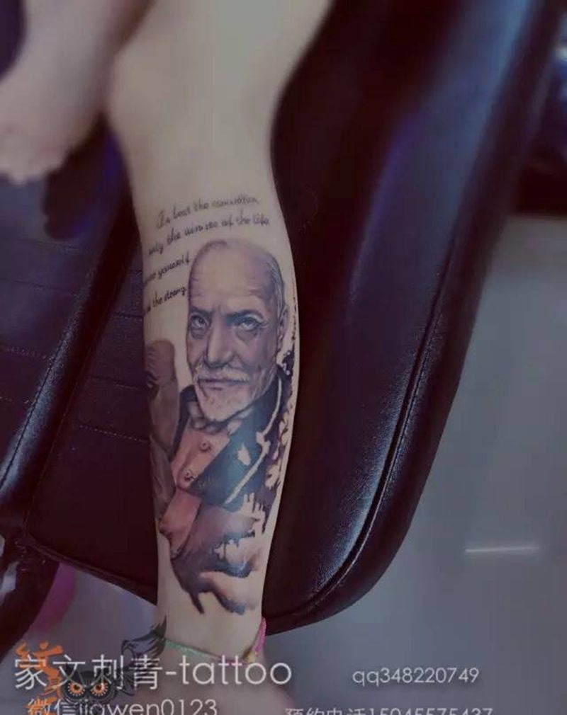 • T包小腿吹火男+阿多福纹身图片_腿部老传统新传统吹火男阿