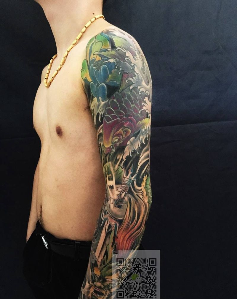 当前位置: 首页 >广东省湛江市纹身店-家文刺青Tattoo纹身图案>上臂原来小黑鱼添加花臂纹身图片
