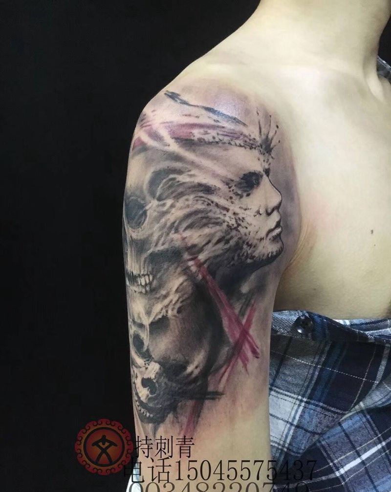 • 纹身吧推荐的披肩图腾半胛纹身图案作品展示