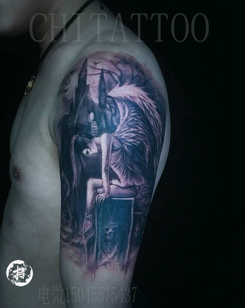 • 纹身吧推荐的披肩图腾半胛纹身图案作品展示