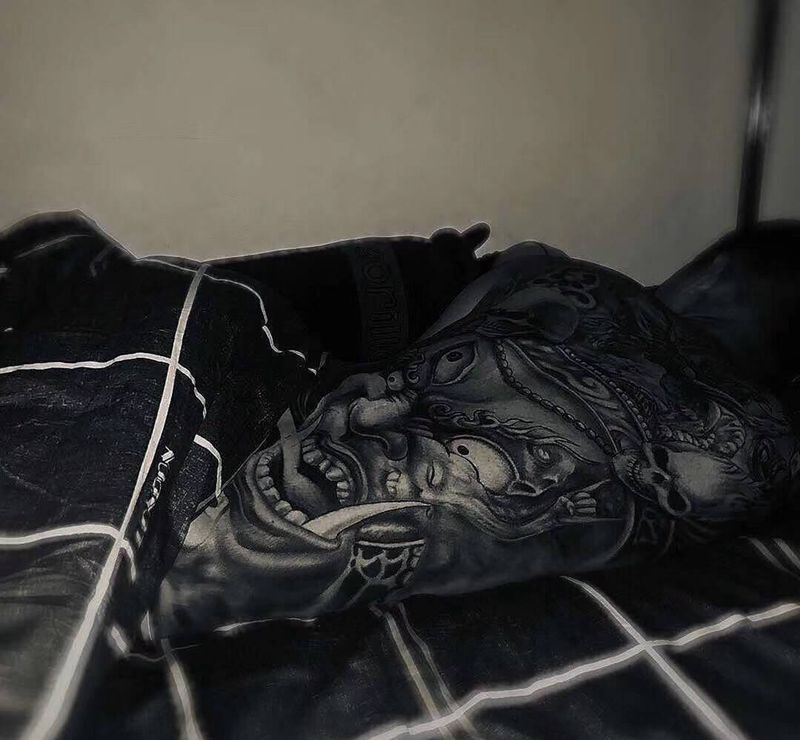 黑灰满背纹身图案