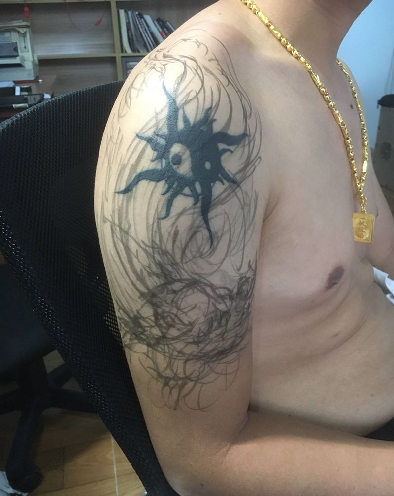 • 纹身吧推荐的披肩图腾半胛纹身图案作品展示