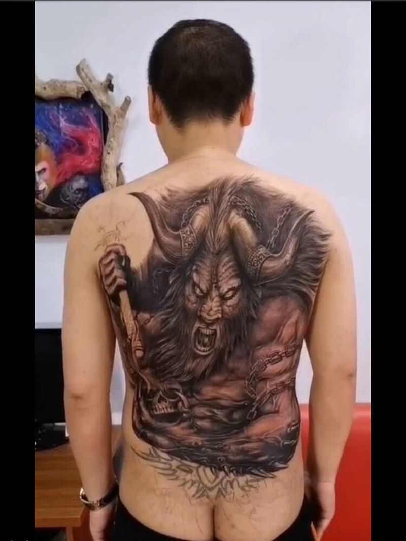 黑灰满背纹身图案