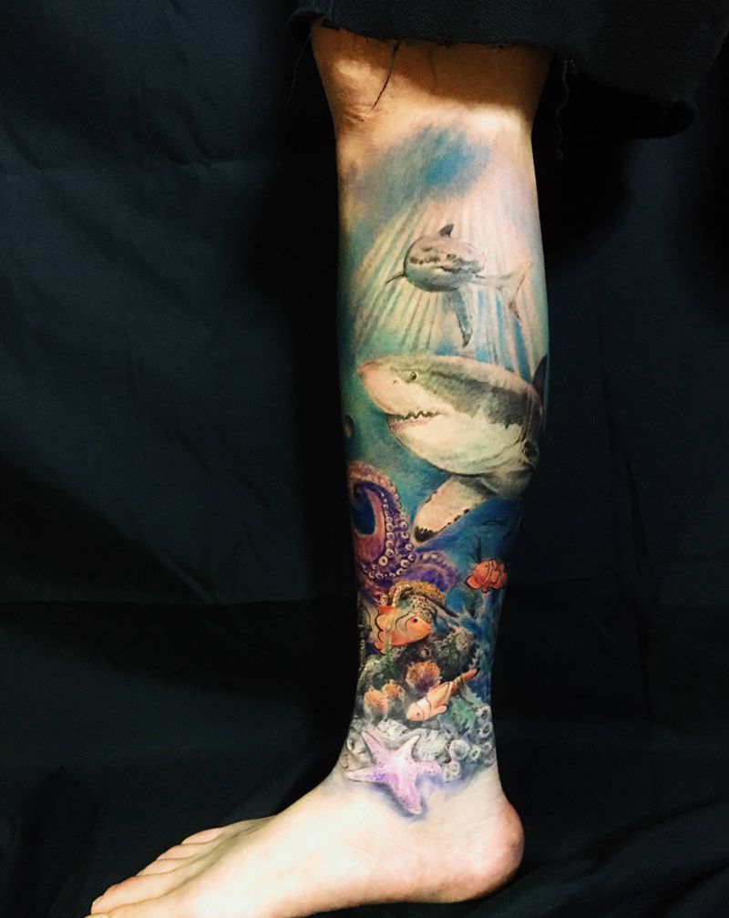 当前位置: 首页 >广东省湛江市纹身店-家文刺青Tattoo纹身图案>海底世界纹身图片_腿部纹身图案