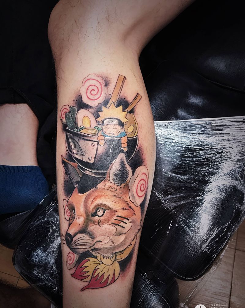 • T包小腿吹火男+阿多福纹身图片_腿部老传统新传统吹火男阿