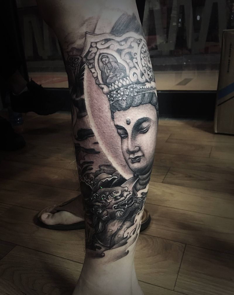 • T网红王老大花腿龙纹身图片_腿部新传统纹身图案
